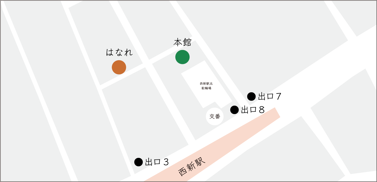 本 館 : 福岡市早良区西新3-1-12(Google map)